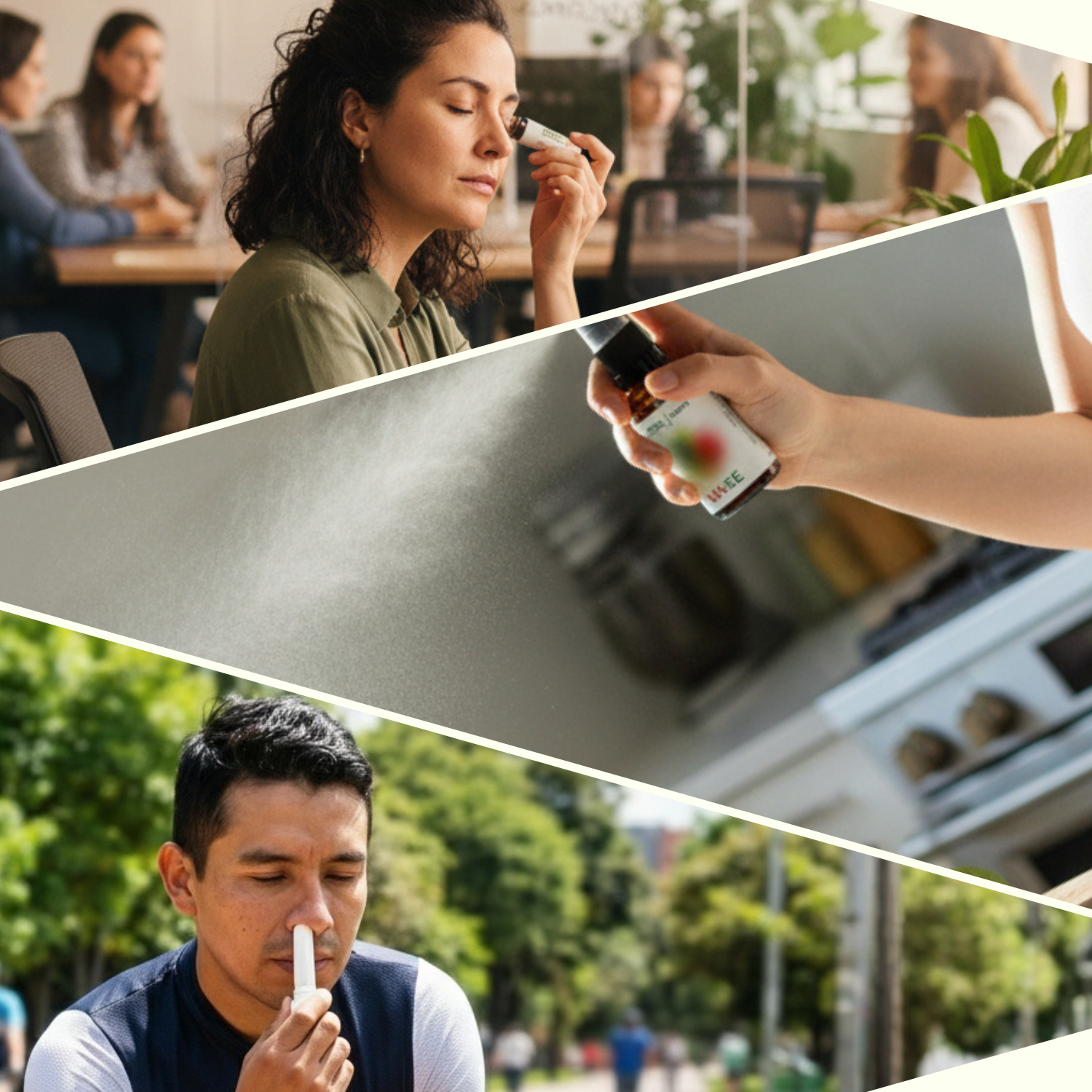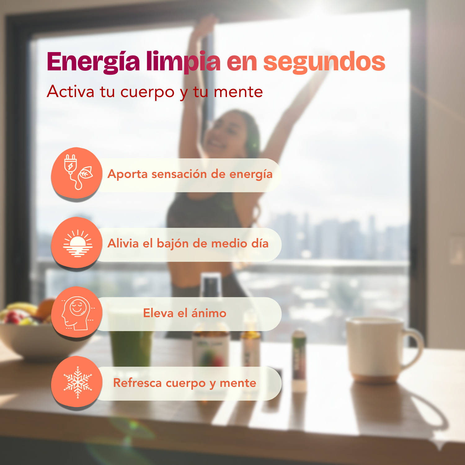 Puedes verlo como una alternativa o complemento sensorial cuando no quieres tomar más café, pero sí necesitas un empujón de frescor y claridad. No contiene cafeína ni azúcares añadidos.